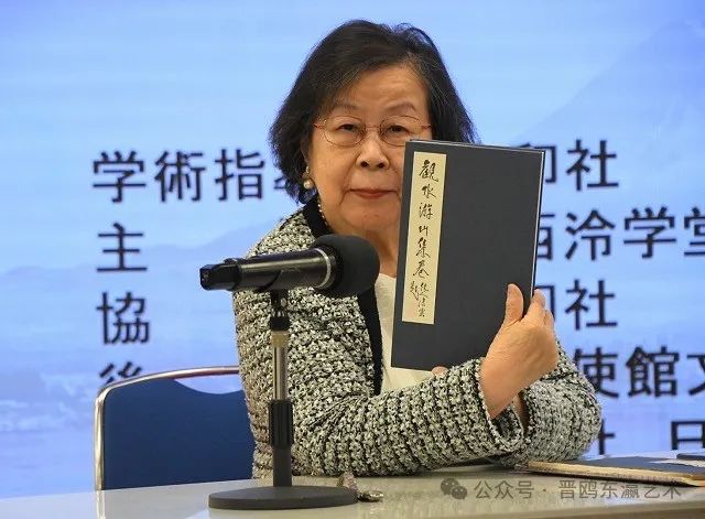 開会式後の一番手に、丁鶴盧研究会会長、西泠印社創設者の丁仁の孫、丁如霞氏が、貴重な歴史的資料を披露してくださり、そして丁輔之が創作した書画長巻『観水遊山』を紹介して下さりました。
